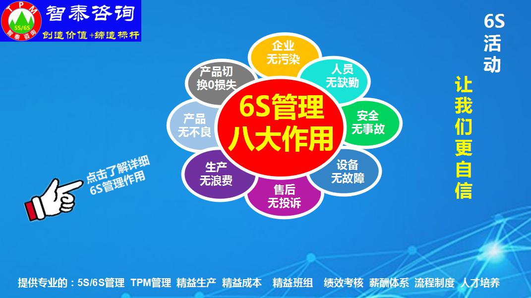 6S管理很多企業(yè)都在推進(jìn),但對6S管理的目的不太清楚,對6S管理的理解還很片面,以為6S管理就是大掃除,6S管理就是運動,下面智泰咨詢顧問為你分享下6S管理的目的......