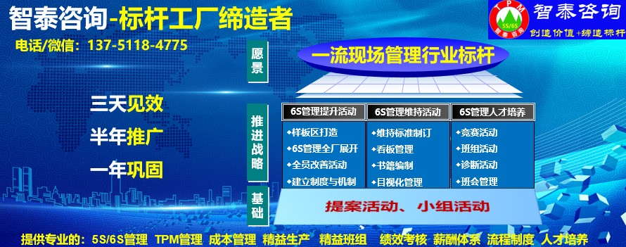 貴司想做好5S管理就找智泰咨詢,智泰咨詢首創(chuàng)5S與企業(yè)文化融合,5S與精益管理融合輔導(dǎo),效果非常好,一次咨詢?nèi)嫣嵘?/strong>