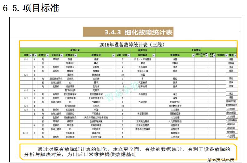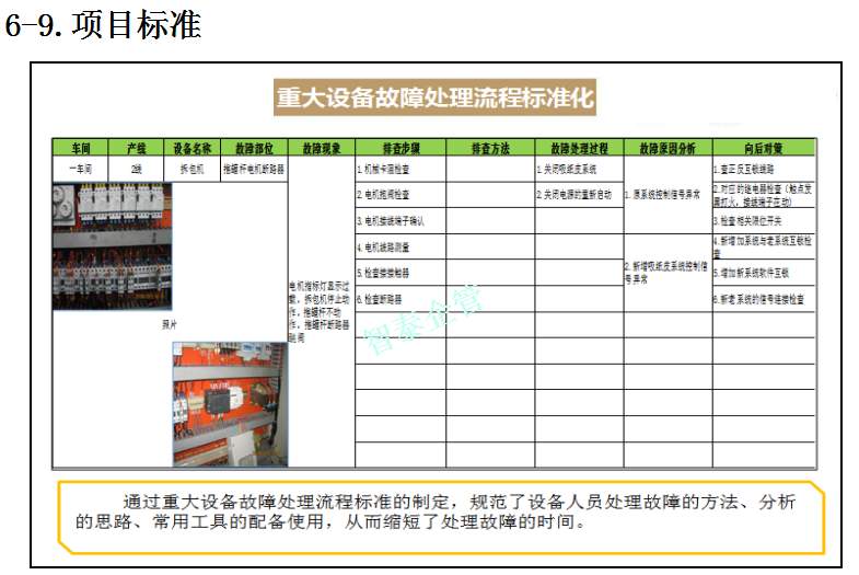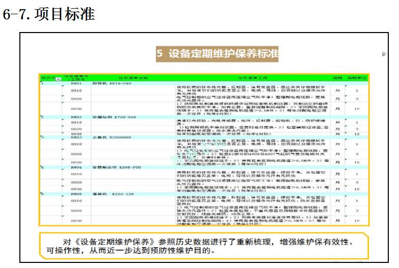 智泰咨詢下屬的TPM咨詢公司為企業(yè)推進的TPM管理活動中,為企業(yè)設(shè)備故障率下降推進了大量的制度及標準,通過全員消除設(shè)備的缺陷并改善及復原,并對設(shè)備進行部分改良,促進設(shè)備長期穩(wěn)定運