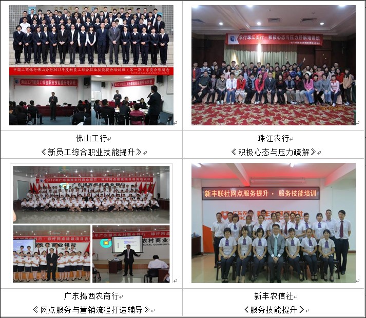 《網(wǎng)點(diǎn)行長(zhǎng)綜合管理技能提升》 《廳堂服務(wù)營(yíng)銷一體化》 《新員工職業(yè)心態(tài)與素質(zhì)》 |