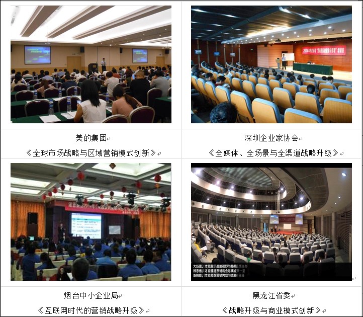 國家工信部信息研究所(五所)、廣東省經(jīng)信委、黑龍江省經(jīng)信委,廣東各地區(qū)經(jīng)信委、北京大學(xué)EMBA、清大高培(清華大學(xué))、上海交大MBA,浙江大學(xué)MBA、中山大學(xué)MBA、阿里巴巴、中車集團、中國航天、長安汽車、中興通信、中國電信、寶鋼集團、特工電力集團、玉柴動力股份、中國電科第55、30、28研究所、山東濟南高新區(qū)、青島高新區(qū)、濰坊高新區(qū)、泰安市經(jīng)信局、中國核工業(yè)部、上海中波輪船、中國能建集團裝備公司、一汽客車股份公司、上海奔騰電器公司、浙江正泰集團、浙江娃哈哈集團、海南養(yǎng)生堂藥業(yè)、德國漢高中國公司、深圳匯川科技有限公司、武漢農(nóng)商行(輪訓(xùn)5期)、香港亞洲商學(xué)院MBA、廣東省電信公司數(shù)據(jù)通信局、廣州移動、廣東眾志通信、tata木門,墨瑟木窗、臨沂建材商城,龍大集團、山東三元集團、杭州勝達(dá)集團、杭州綠苑集團、河南電力等