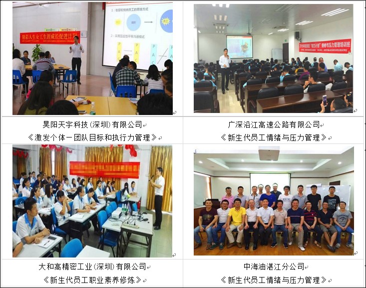 程平安老師有著15年世界500強(qiáng)管理實(shí)戰(zhàn)經(jīng)驗(yàn),了解許多臺資,港資及日資企業(yè)的不同管理方式及企業(yè)文化模式,能夠解決企業(yè)在新生代員工管理中遇到的棘手問題。曾連續(xù)6年為富士康集團(tuán)近300多位員工進(jìn)行“一對一“心理咨詢輔導(dǎo),緩解了員工與集團(tuán)的矛盾對立,增強(qiáng)了集團(tuán)內(nèi)部員工的凝聚力和幸福感,且個(gè)人出版《抗壓才能減壓,積極才能成長》的書籍,被富士康集團(tuán)指定為新生代員工入職必讀書籍,廣受集團(tuán)內(nèi)部學(xué)員喜愛。