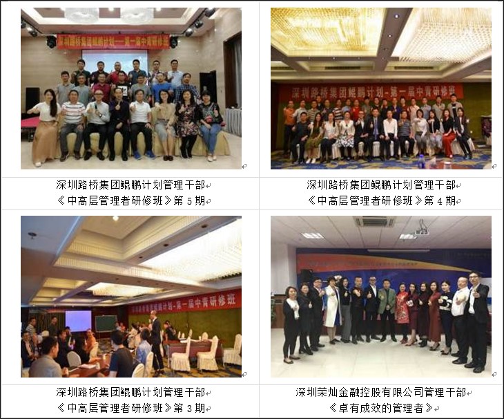 ■2018年成功為深圳路橋集團(tuán)中高層管理做《路橋集團(tuán)鯤鵬計劃中青研修班》6期,打造路橋集團(tuán)堅實的中高層管理人員。