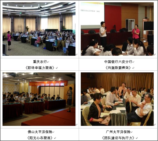 各類企業(yè):大慶集團(tuán)、河南郵政、新興鑄管、江西新余鋼鐵、中國核二建集團(tuán)、中航工業(yè)沈飛集團(tuán)、浙江國技互聯(lián)信息技術(shù)有限公司[溫州百度]、一汽大眾成都分公司、益陽移動、中石化華北油氣分公司、中國電信、廣州電信、珠海郵政、深圳地鐵集團(tuán)、深圳百康健康、大琢投資、琢子文化、廣東南航、佛山愛得樂集團(tuán)、順德區(qū)大良科技、廣東精藝金屬股份有限公司、光大房地產(chǎn)、中科科技發(fā)展、廣東金剛工程、冠捷電子、深圳鵬都興實業(yè)、佛山偉仕達(dá)電器有限公司、佳隆股份、理丹電器、建華管樁、深圳TCL、廣東嘉晟生物科技、天安數(shù)碼城集團(tuán)、廣東高速通驛集團(tuán)、華企商學(xué)院等。
