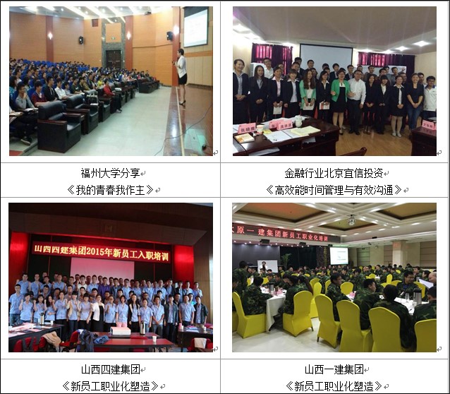 大型國(guó)有企業(yè):廣東省機(jī)場(chǎng)集團(tuán)、南京公路集團(tuán)、山西一建、山西四建、中電建,其中電建水環(huán)境公司采購(gòu)老師《陽(yáng)光心態(tài)與感恩工作》《人際溝通與交往藝術(shù)》課程30期,中國(guó)移動(dòng)《職場(chǎng)壓力與情緒管理》采購(gòu)量100余天;